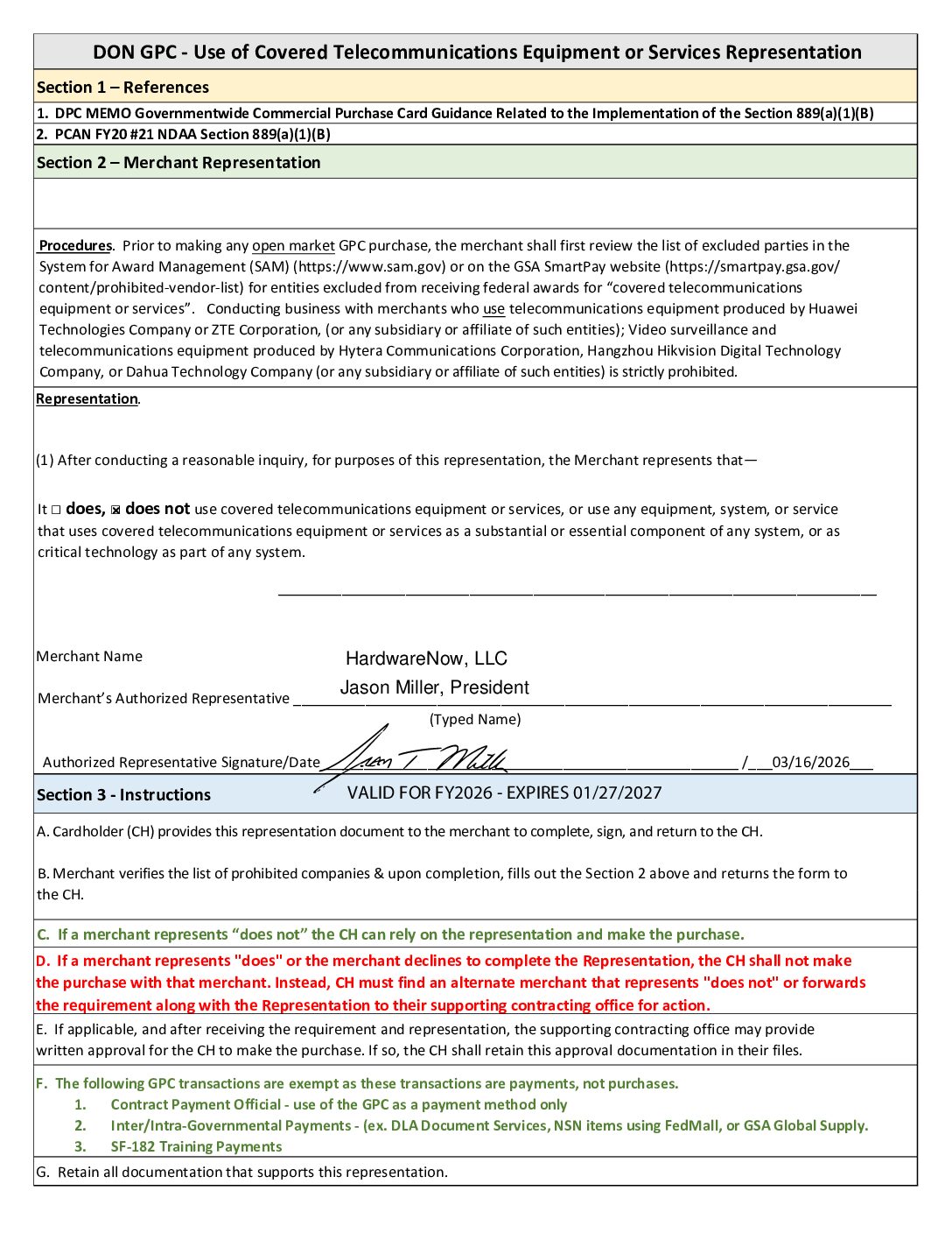 FORM 889 MICRO PURCHASE