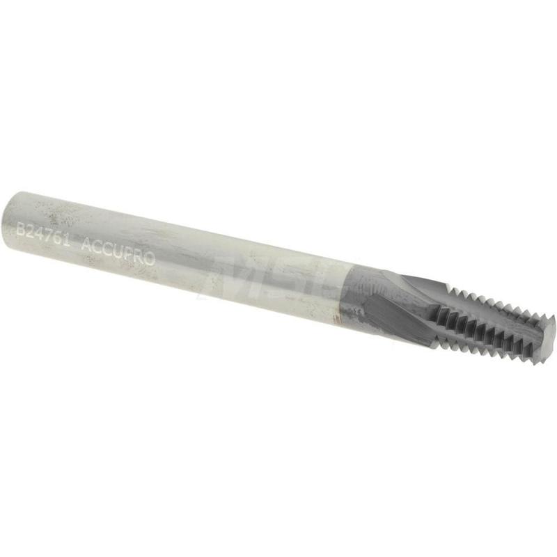 Helical Flute Thread Mill: 5/8-11, Internal, 4 Flute, 1/2″ Shank Dia, Solid Carbide 11 TPI, 0.49″ Cut Dia, 1″ LOC, TiAlN Coated