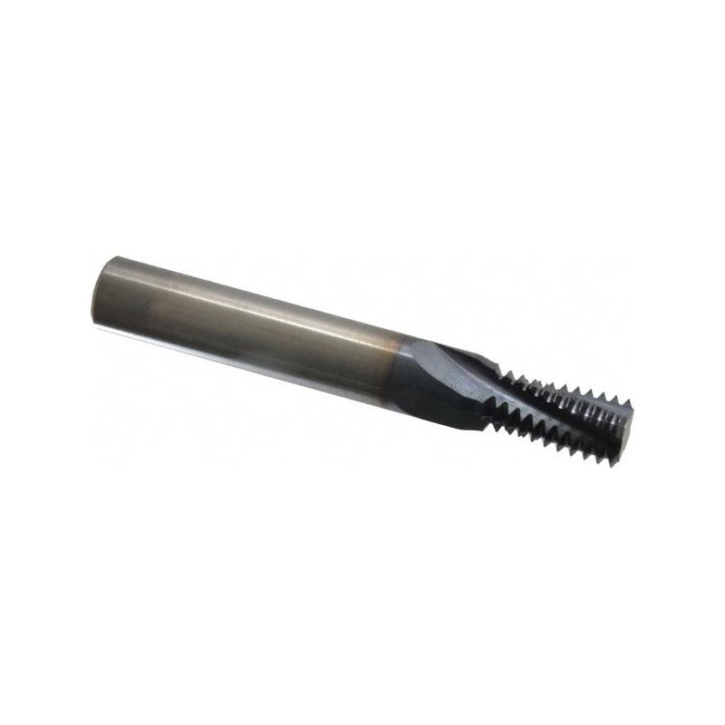 Helical Flute Thread Mill: 1/8-27, Internal, 4 Flute, 5/16″ Shank Dia, Solid Carbide 27 TPI, 0.3″ Cut Dia, 0.592″ LOC, TiAlN Coated