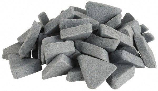 Triangle Tumbling Media: Ceramic Carrier, Ceramic Abrasive, 3/8″ Long, 1-1/8″ High Angle Edge