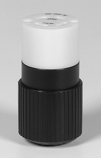 Locking Inlet: Connector, Commercial, L15-30R, 250V, Black & White Self-Grounding, 30A, Thermoplastic Elastomer, 3 Poles, 4 Wire
