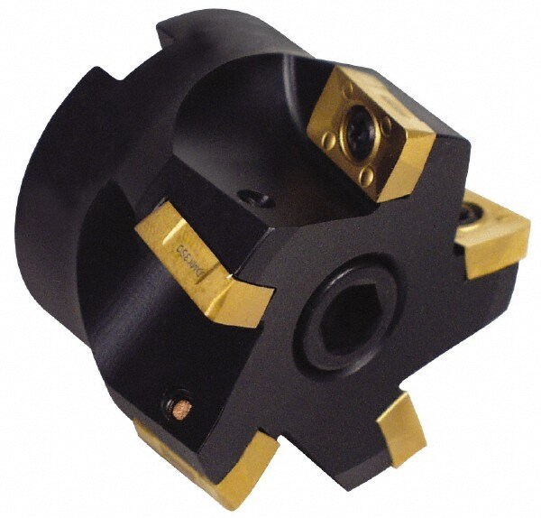 5″ Cut Diam, 1-1/2″ Arbor Hole Diam, 0.55″ Max Depth, Indexable Square-Shoulder Face Mill Takes 8 Inserts, 0/90° Lead Angle, 2″ High, APET 1604.., XPET 1604.. Insert Style, Series SSSM