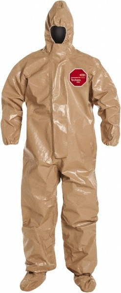Non-Disposable Rain & Chemical-Resistant Coverall: Tan, Hazmat Zipper Closure, Elastic Cuff