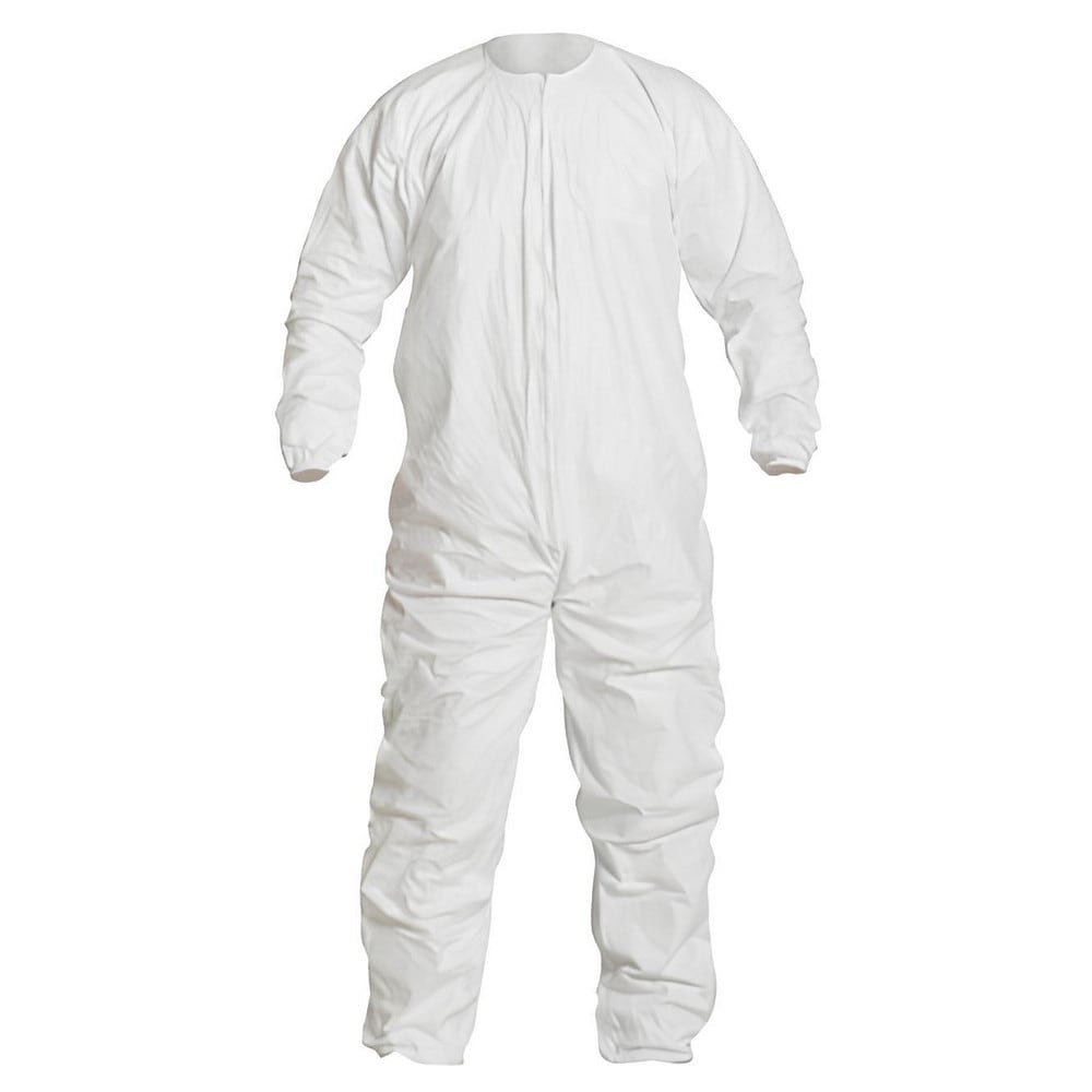 Disposable Coveralls: Size 3X-Large, Film Laminate, Zipper Closure White, Elastic Cuff, Elastic Ankle, ISO Non-Cleanroom Class