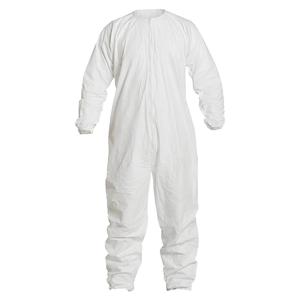 Disposable Coveralls: Size Large, Film Laminate, Zipper Closure White, Elastic Cuff, Elastic Ankle, ISO Non-Cleanroom Class