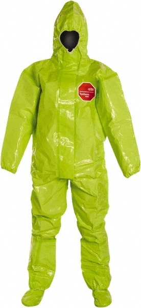 Non-Disposable Rain & Chemical-Resistant Coverall: Lime, Hazmat Hook & Loop, Storm Flap Closure, Elastic Cuff