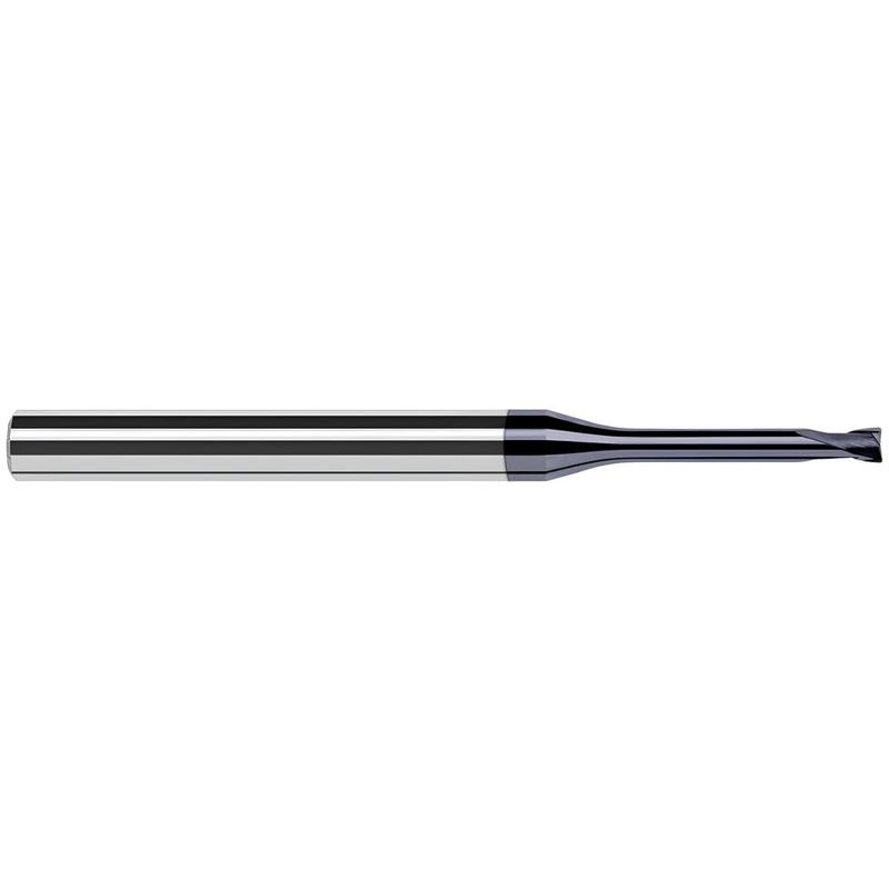 Corner Radius End Mill: 0.078″ Dia, 1/16″ LOC, 0.01″ Radius, 2 Flutes, Solid Carbide 2-1/2″ OAL, 1/4″ Shank Dia, 20 ° Helix, AlTiN Coated, Single End, Series End Mills for Hardened Steels – Finishers – Corner Radius