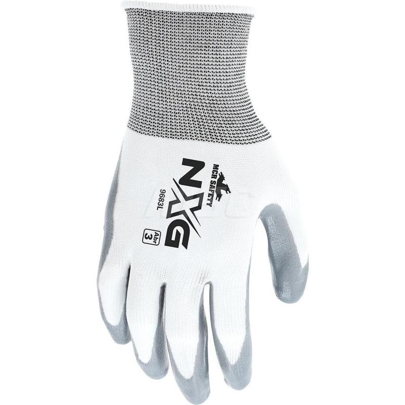 General Purpose Work Gloves: Medium, Nitrile Coated, Nylon Gray, White & Blue