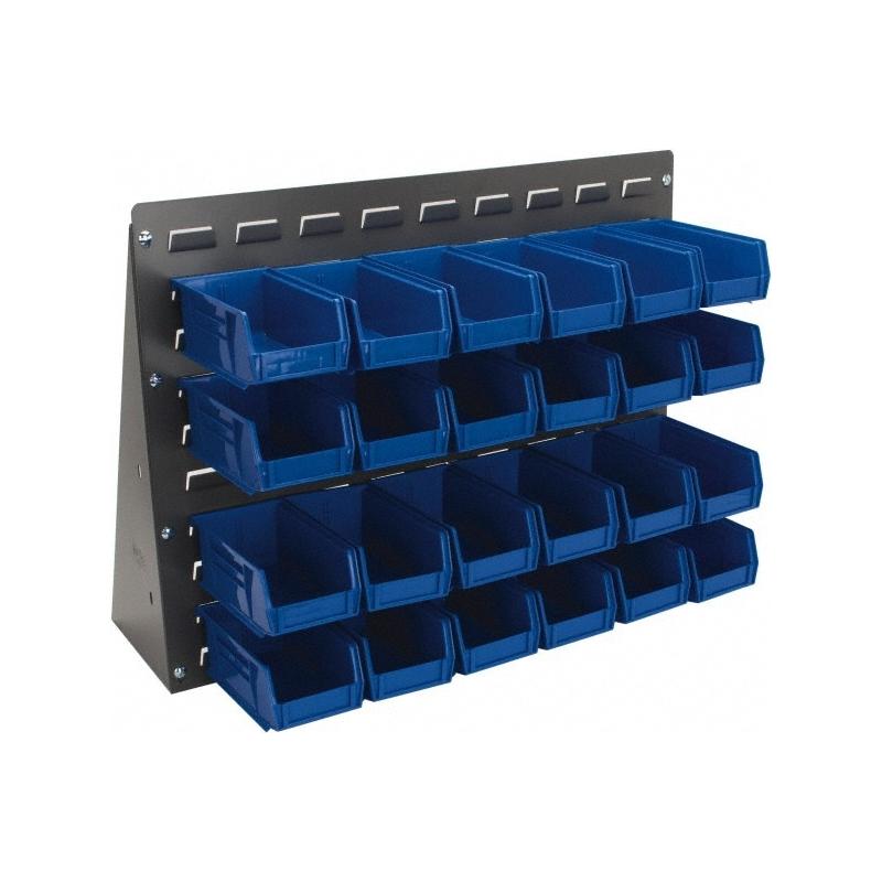 24 Bin Bench Rack Unit with Bins 27 Inch Overall Width x 8 Inch Overall Depth x 21 Inch Overall Height, Blue Polypropylene / Polyethylene Bins